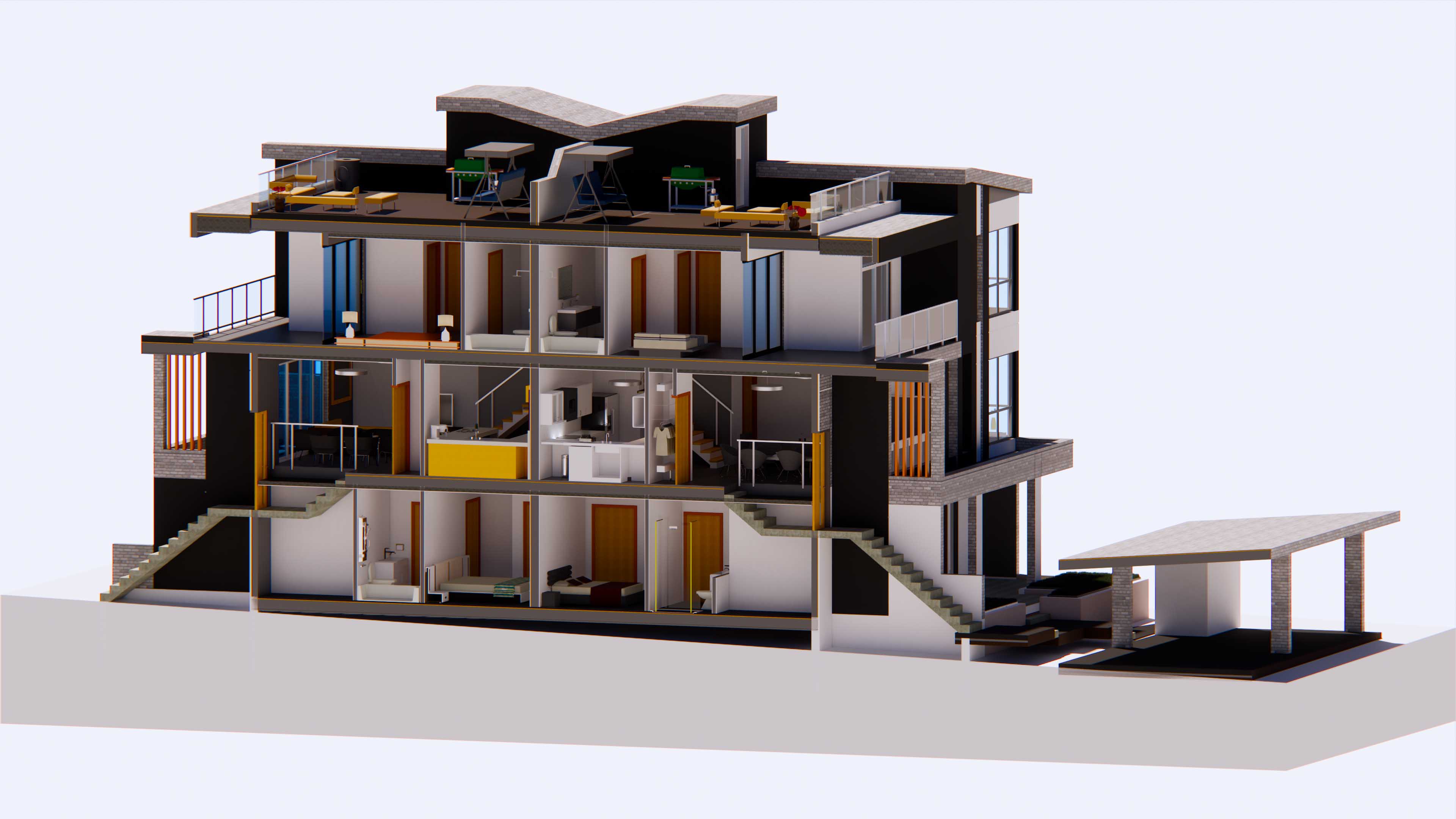 Efficient floor plans maximize land use, incorporating energy-efficient features, insulation, rainwater harvesting, and green roofs. Plus, shield your vehicle from the elements and charge your electric car overnight—more cost-effective than public stations.